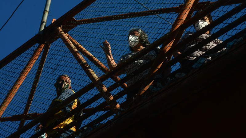 - Personas curiosas se asoman a la orilla de la pasarela para observar el procedimiento. Foto EDH/ Yessica Hompanera