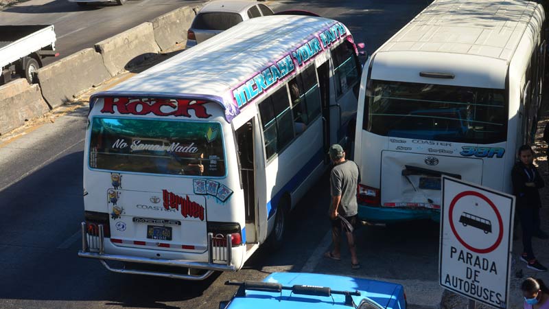 - Según la narración de los testigos, el microbús (derecha) realizó una parada indebida en el carril derecho. Una práctica recurrente de los motoristas. Foto EDH/ Yessica Hompanera
