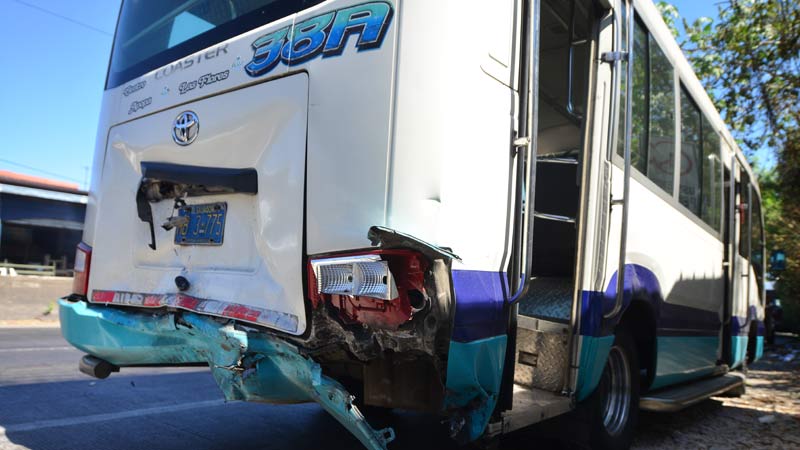 - El microbús resultó con daños leves a comparación del vehículo de Víctor. Foto EDH/ Yessica Hompanera