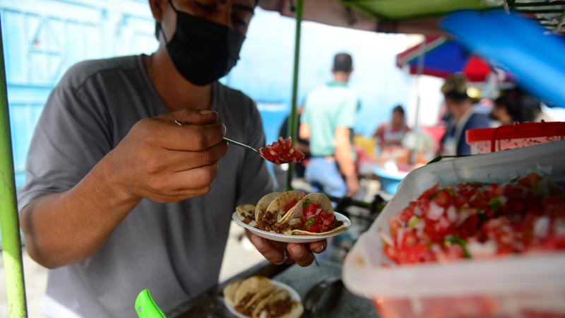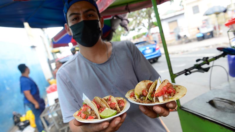 - Vendedores, empleados, gerentes, cajeras; ¡no hay quien se resista al sabor de los tacos! “La verdad que todos compran y yo me admiro porque la comida no perdona”. Foto EDH/ Jessica Orellana