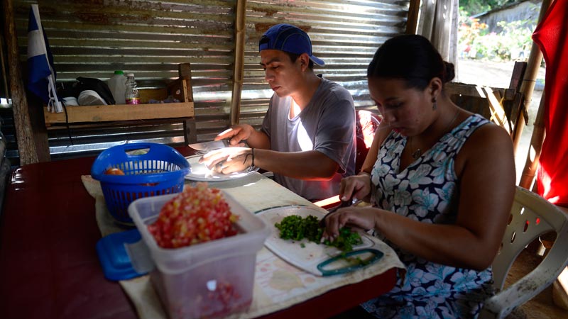- Con tacos ha sacado adelante a su familia y con el apoyo de su pareja preparan desde temprano todos los ingredientes que se va ocupar en la venta. Foto EDH/ Jessica Orellana