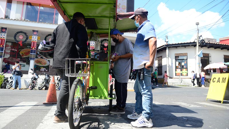 - Sus ganas de salir adelante lo tienen pedaleando por las calles principales de Cojute; lo hace a diario para vender los tacos más sabrosos y baratos del municipio. Foto EDH/ Jessica Orellana