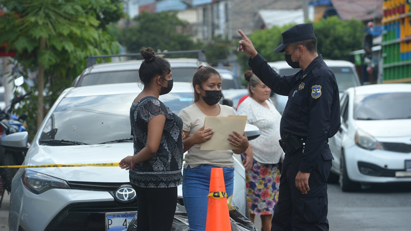 - Dos mujeres jóvenes pide información a un agente policial en el Penalito en San Salvador.
