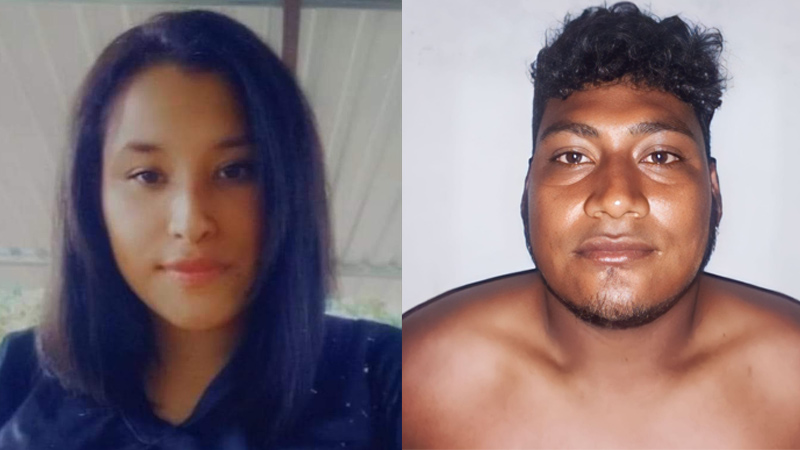 A la izquierda la joven asesinada con arma blanca, la noche del miércoles, en su vivienda ubicada en la carretera a Santiago de María, en el cantón Las Trancas, del municipio de Ozatlán, Usulután. A su derecha pandillero capturado por la PNC identificado como Víctor Manuel Cruz acusado del asesinato.