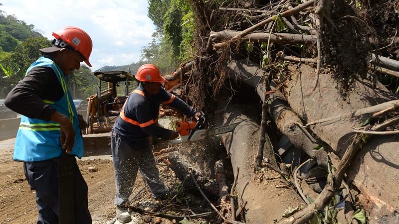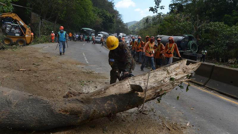 - Militares utilizar motosierra para talar el árbol cayo en la carretera Los Chorros. Foto EDH/ Jorge Reyes