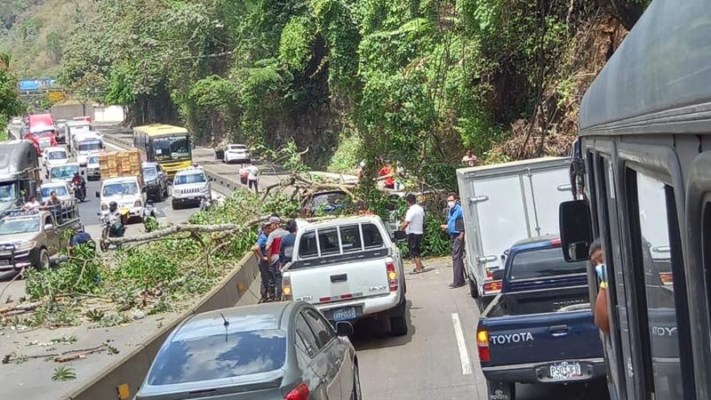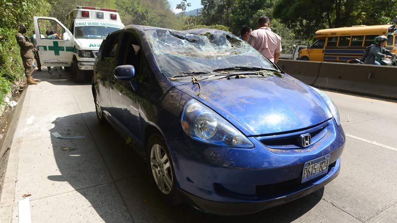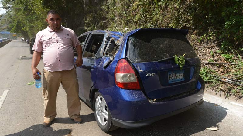 Tremendo susto fue el que se llevó Gerardo Barahona luego de sobrevivir a un desprendimiento de tierra y árboles en el instante que conducía tranquilo por la carretera a Los Chorros en Santa Tecla, La Libertad.