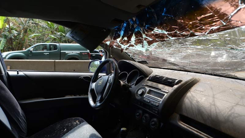 - El hombre señaló que el peso de los árboles bajaron el parabrisas y el techo del vehículo hasta topar con su cabeza. Foto EDH/ Jorge Reyes