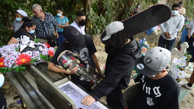 - Los amigos con quienes practicaba skateboard se reunieron frente al ataúd de su amigo. Foto EDH/ Jessica Orellana