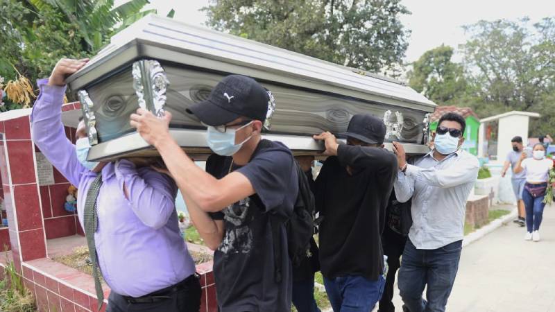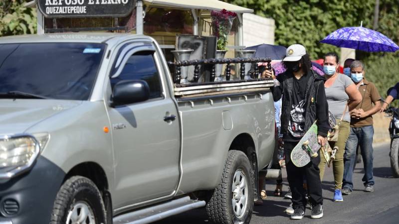 - "Como no vamos a cargar a nuestro hermano" el grupo de jóvenes se organizó para cargar el ataúd desde la entrada del cementerio Foto EDH/ Jessica Orellana