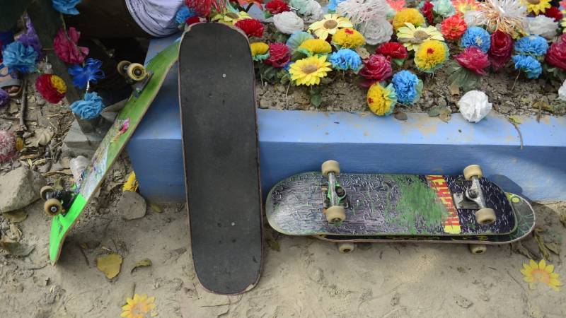 - Se colocaron patinetas en el lugar donde fue enterrado el cuerpo de Gerson Gaitán. Foto EDH/ Jessica Orellana