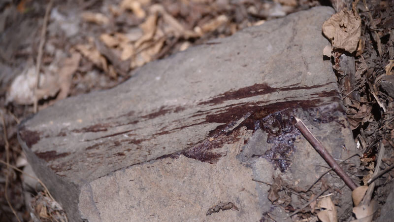 - En la quebrada se lograba observar un camino de sangre en distintas piedras que llevaban al fondo donde fue encontrado el cuerpo. Foto EDH Francisco Rubio.
