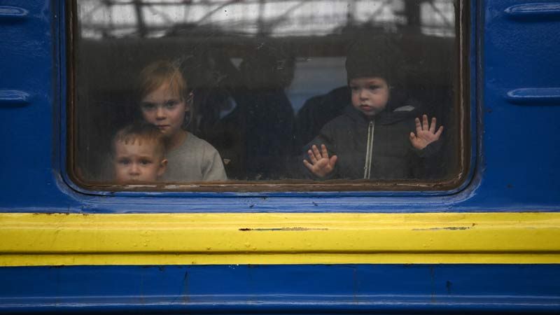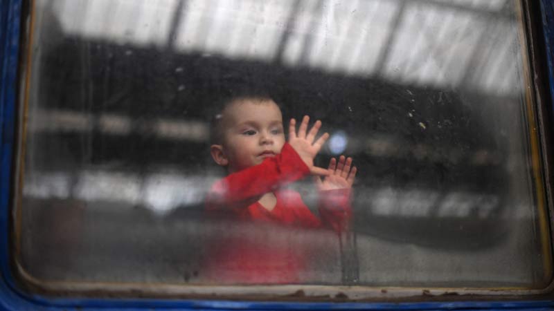 - Un niño mira desde la ventana de un vagón mientras un tren se prepara para partir de una estación en Lviv, en el oeste de Ucrania, en ruta hacia la ciudad de Uzhhorod, cerca de la frontera con Eslovaquia. Foto AFP