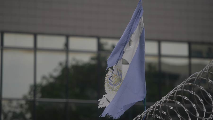 - A pesar de la celebración y del protocolo, banderas de algunas zonas de la Asamblea siguen sin cambiarse. Foto EDH/ Jonatan Funes