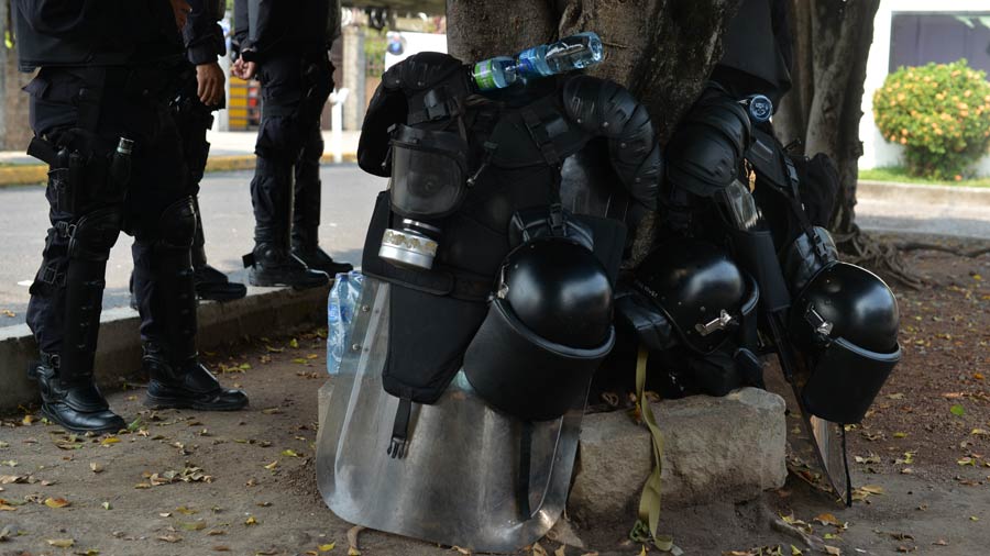 - Un grupo de la Unidad de Mantenimiento del Orden (UMO) aguardó fuera de la Asamblea para prevenir algún altercado. Foto EDH/ René Quintanilla