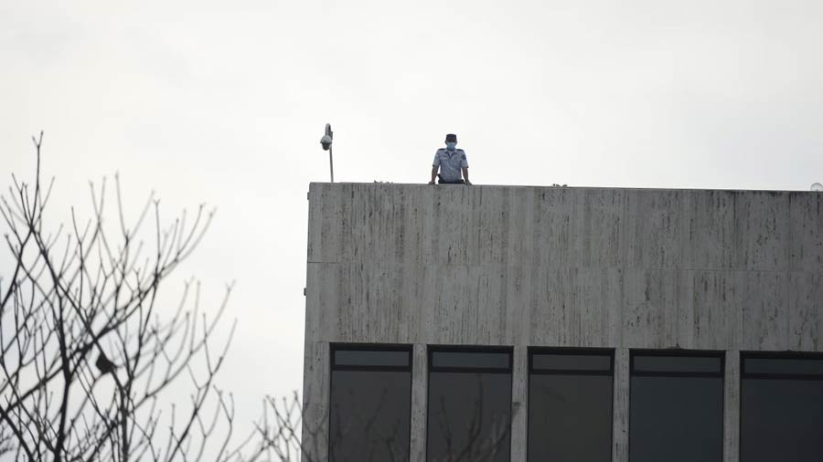 - Un custodio del edificio de la Corte Suprema de Justicia observa la actividad dentro del recinto legislativo. Foto EDH/ Jessica Orellana