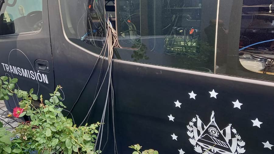 - Cables salen de un microbús de transmisión de Canal 10 en la Asamblea. Foto EDH/ Milton Rodríguez