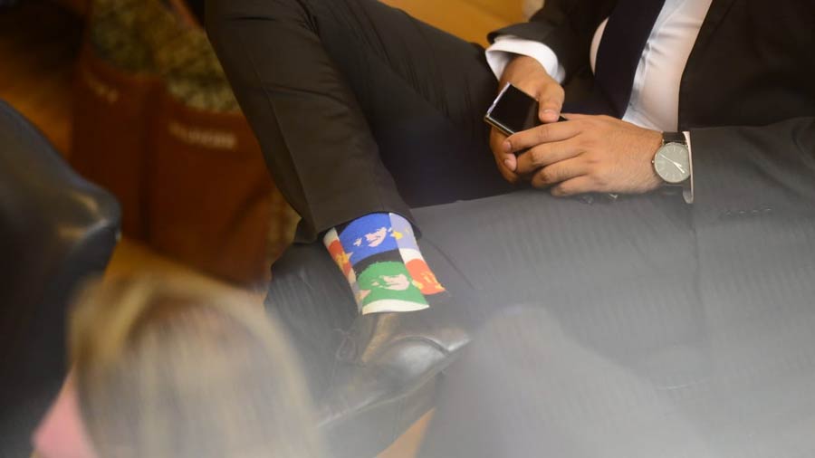 - Calcetines de colores alusivos a la banda inglesa The Beatles. Foto EDH/ Jessica Orellana