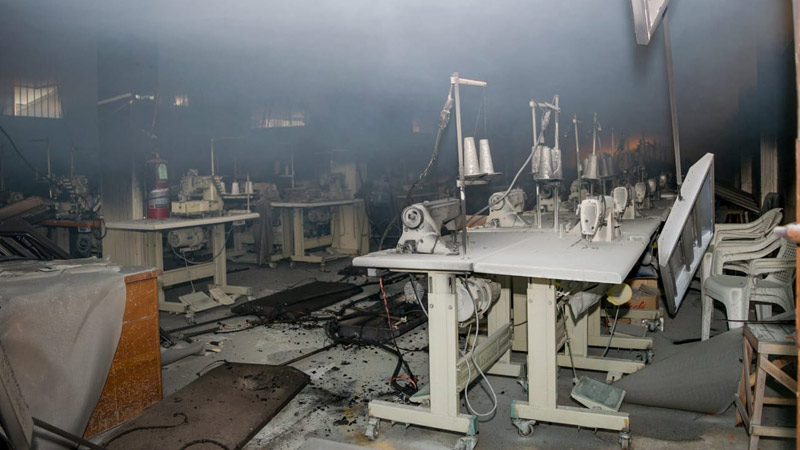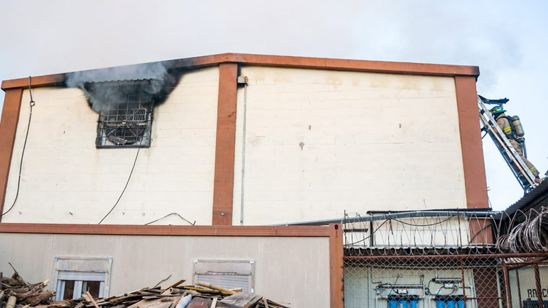 - El incendio en el Centro Penal La Esperanza solamente provocó daños materiales en los talleres. Foto EDH cortesía Bomberos.