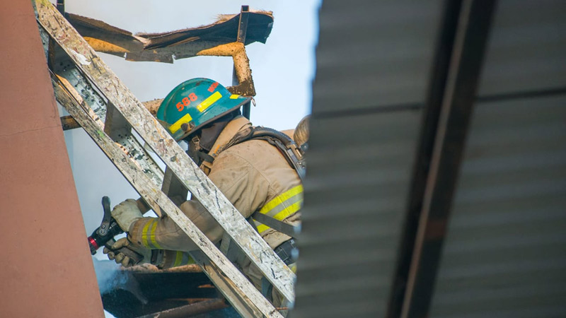- Los bomberos supervisan la zona donde ocurrió el incendio en el penal La Esperanza. Foto Jessica Orellana.