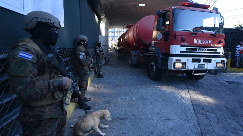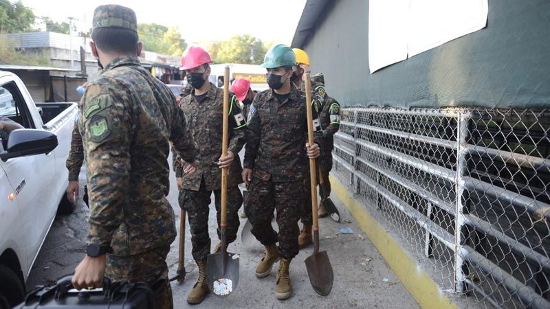 - Los militares llegaron al penal La Esperanza a colaborar en apagar el incendio. Foto EDH Jessica Orellana.