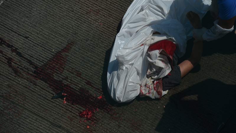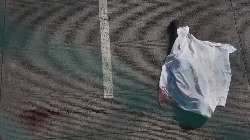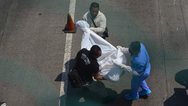 - Un pasajero de un bus asoma la cabeza por la ventana para observar el joven fallecido. Foto EDH/ Yessica Hompanera