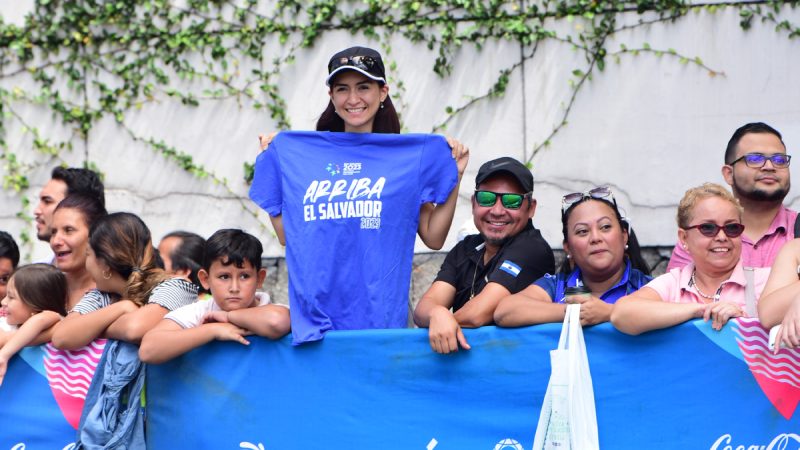 Con porras, pancartas, colorido maquillaje y camisetas, las salvadoreñas acudieron a las competencias a apoyar a los competidores nacionales e internacionales.