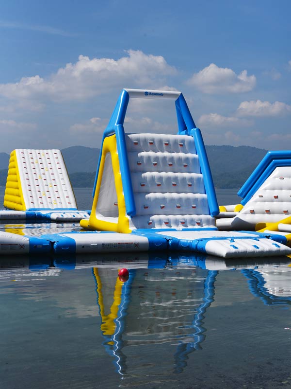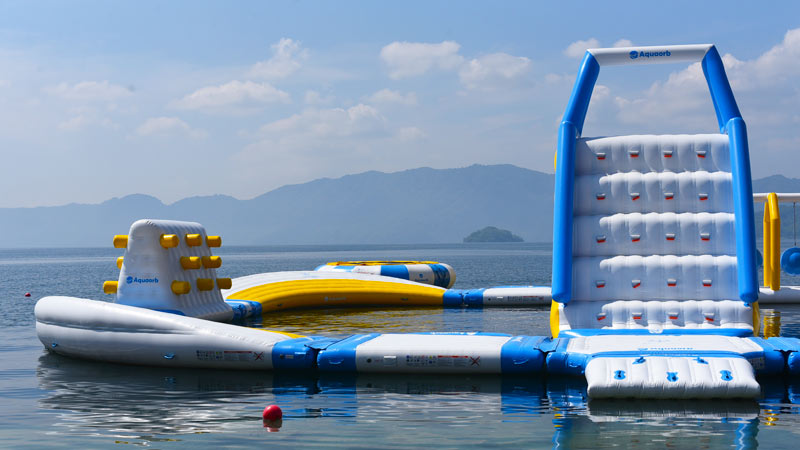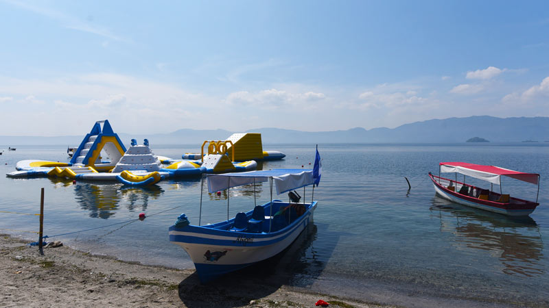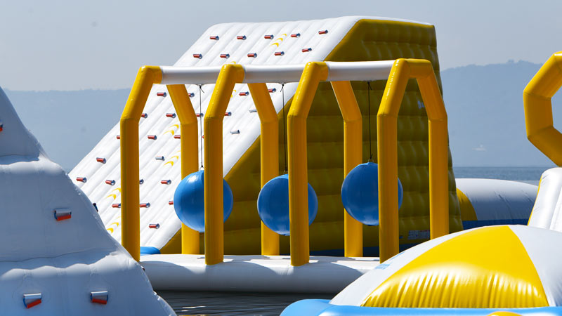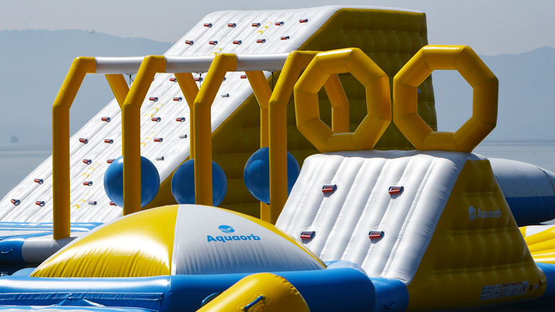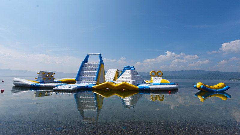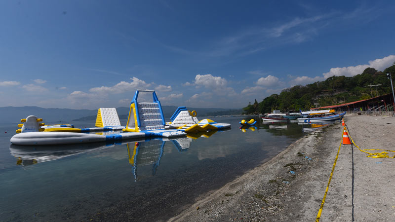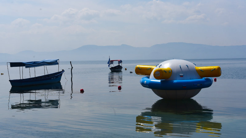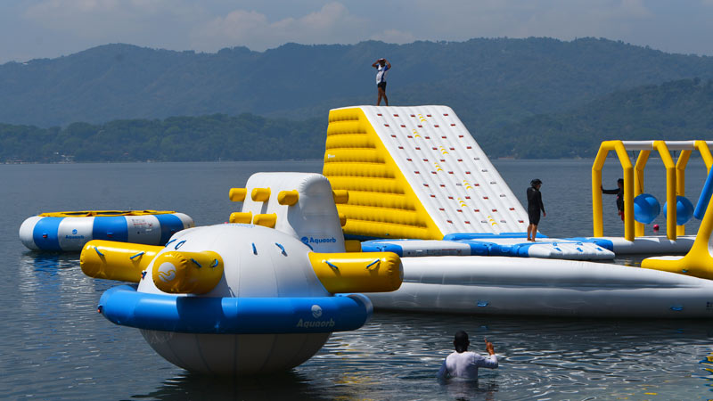 - Parte de los nuevos juegos inflables sobre el Lago de Ilopango, en Apulo. Foto EDH/ Menly Cortez