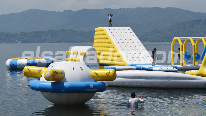 - Parte de los nuevos juegos inflables sobre el Lago de Ilopango, en Apulo. Foto EDH/ Menly Cortez
