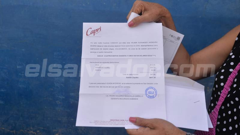 - Margarita muestra una carta que comprueba que su hijo trabaja desde el 2019. Esto para demostrar que es una persona honesta, según la madre. Foto EDH/ Jonatan Funes