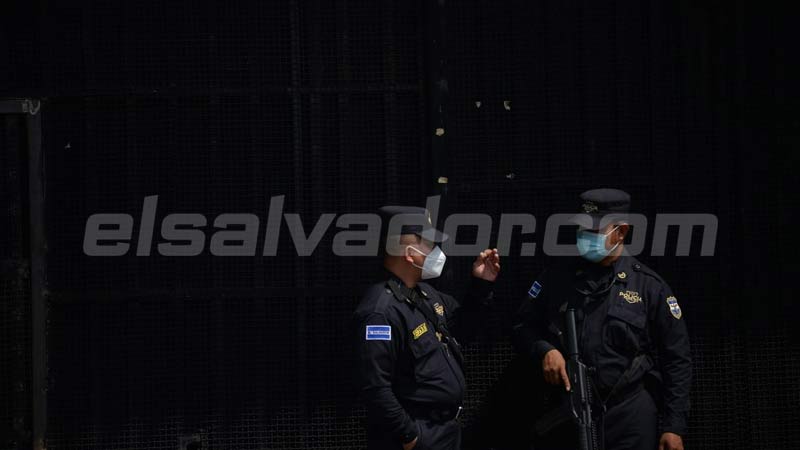 - Policías custodian la entrada principal de "El Penalito". Foto EDH/ Jonatan Funes