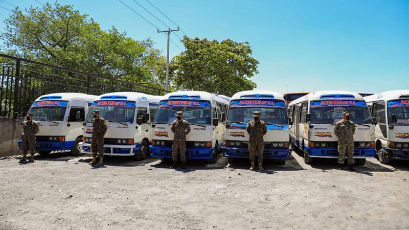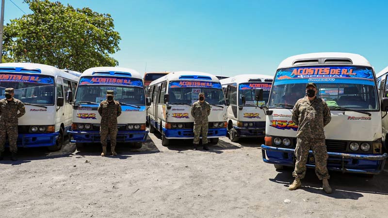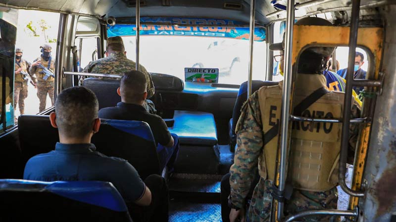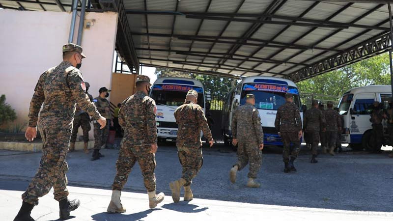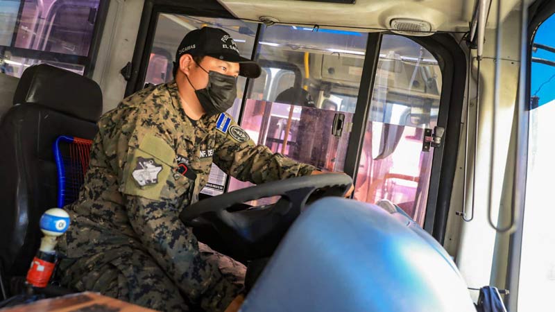 A través de una publicación en Twitter, la Fuerza Armada, respaldada por Bukele, informó que militares manejaran las rutas de buses y microbuses de la ruta 152 y 42. Flota del empresario del transporte, Catalino Miranda, arrestado el sábado por la noche.