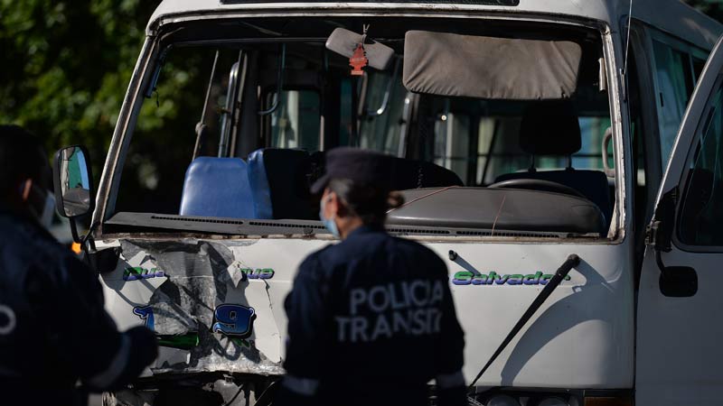 - Según testigos, Aquino manejaba a excesiva velocidad mientras competía el carril con otro microbús de la misma ruta. Foto EDH/ Jonatan Funes