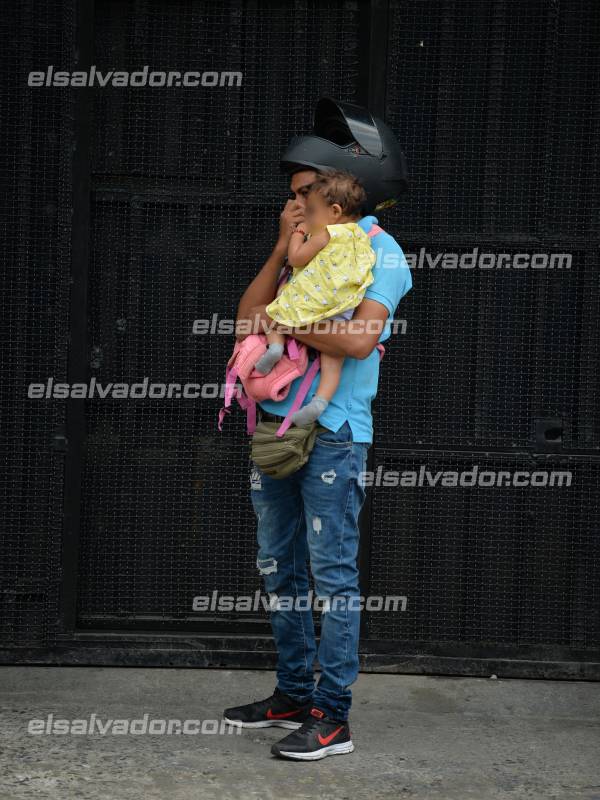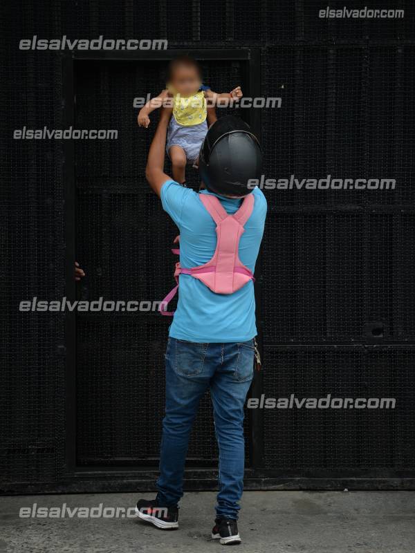 - “Es duro, nunca había vivido en carne propia esta situación. Lamento cómo se aplican las leyes, las personas honestas no tenemos por qué pagar los platos rotos”, señaló el joven padre mientras cargaba a su hija, ya contenta por recibir el alimento y ver a su madre. Foto EDH/ Jonatan Funes