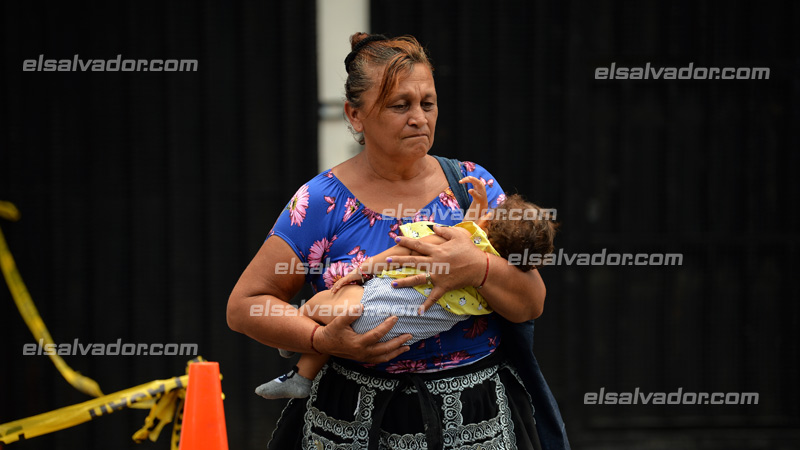- Madre de crianza de Víctor carga a la niña de nueve meses luego que salió de las bartolinas tras ser alimentada. Foto EDH/ Jonatan Funes