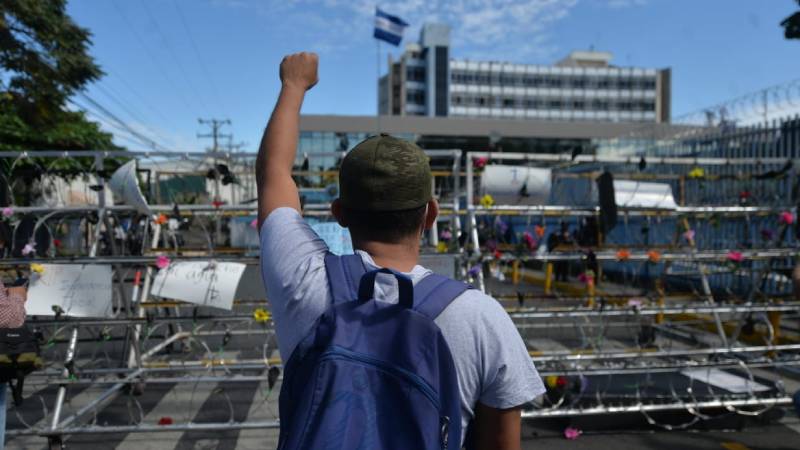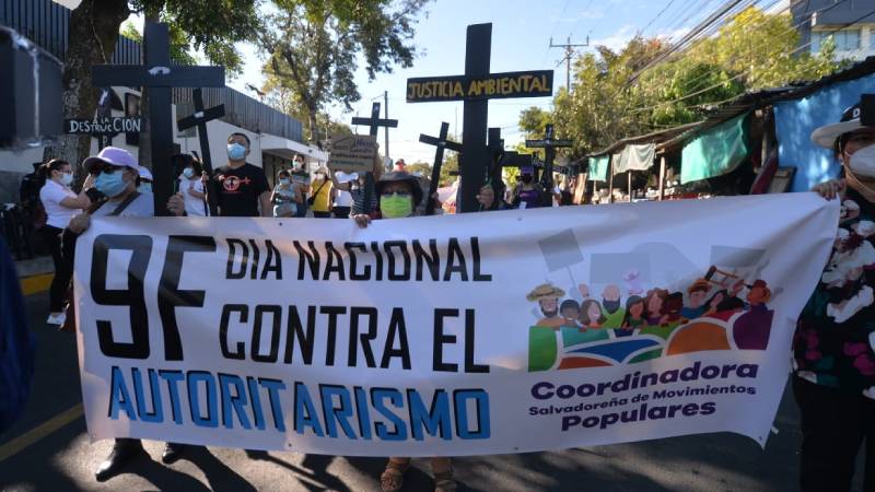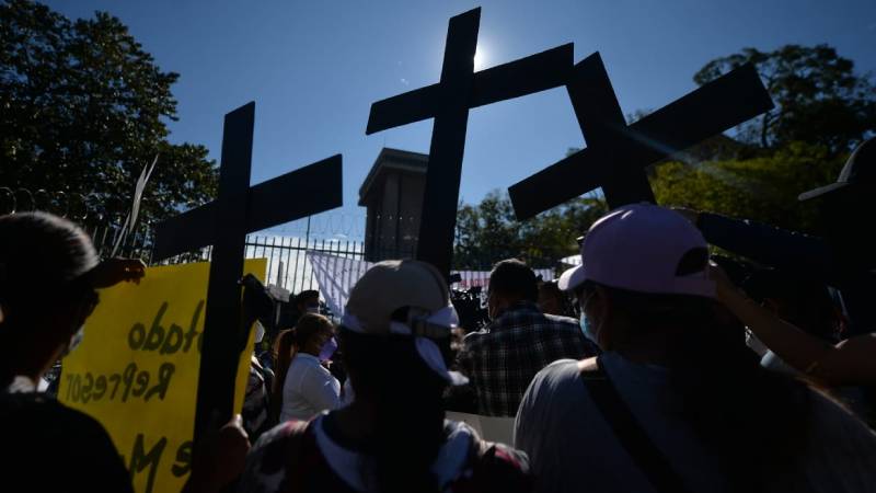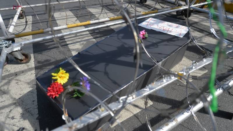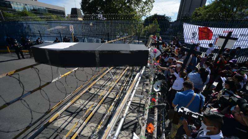 "Sepelio a la democracia": Protesta enfrente de Asamblea Legislativa por la militarización de hace 2 años