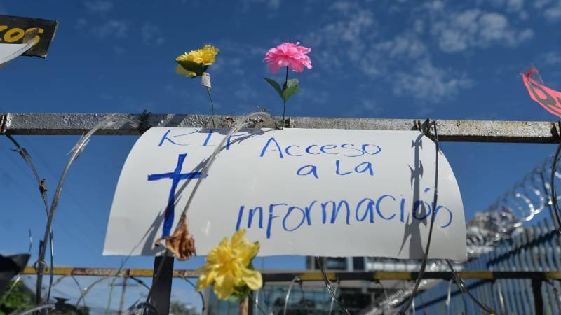 - "RIP acceso a la información" "No a la dictadura" son alguno de los mensajes de los manifestantes. Foto EDH/ Jonatan Funes