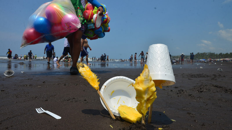 Los bañistas consumen alimentos en recipientes de plástico, como el polipropileno, que tardan al menos 800 años en degradarse y muchos de este material va directo al mar.