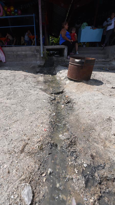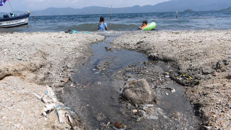 - En el lago de Ilopango, en el malecón Vía Vela ubicado en el cantón Apulo, algunos turistas señalaron que el problema del desagüe que de los comedores va a la vista de todos directo al río, es algo que opaca la iniciativa de ambiente familiar del parque acuático. Foto EHD/Menly Cortez