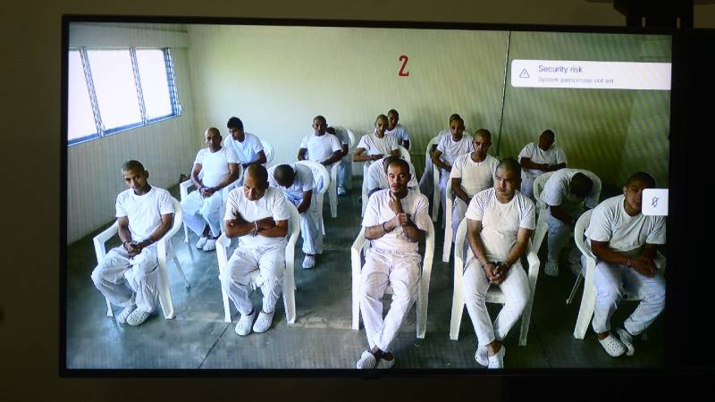 - Los 18 mayores de edad permanecen en el penal de Izalco, Sonsonate, desde el cual los imputados participaron en la audiencia judicial a través de videoconferencia. Foto EDH/ Francisco Rubio