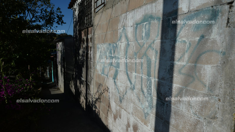 - En los pasajes del reparto Las Campaneras todavía se logran ver los grafitis de la pandilla 18. Foto EDH