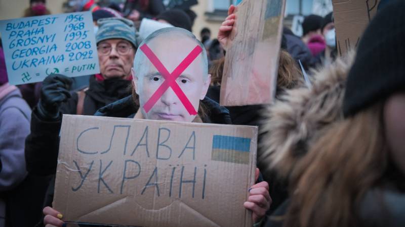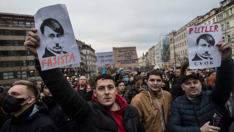 - Un protestante Pro-Ucrania ondea una pancarta durante una demostración de apoyo en Prague, República Checa Foto Agencia AFP