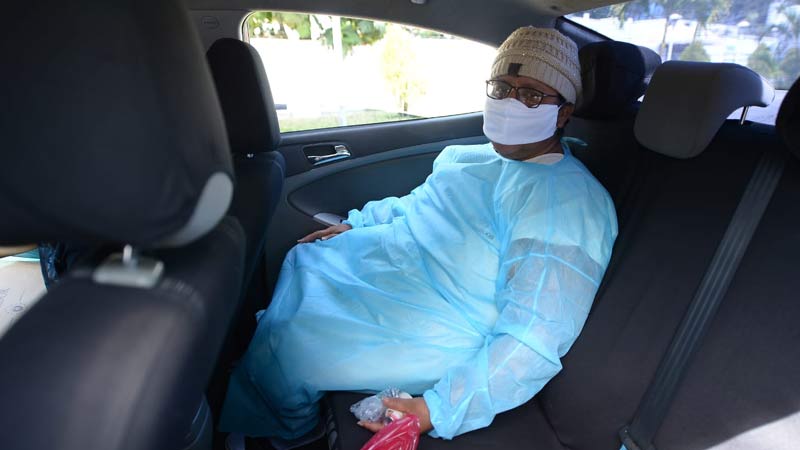 - Kenya Ramírez pasó varios minutos frente al hospital a la espera de un familiar que sobrevivió al covid-19. Ella señaló que era un paciente de 30 años que fue ingresado unas semanas atrás. Foto EDH/ Jorge Reyes