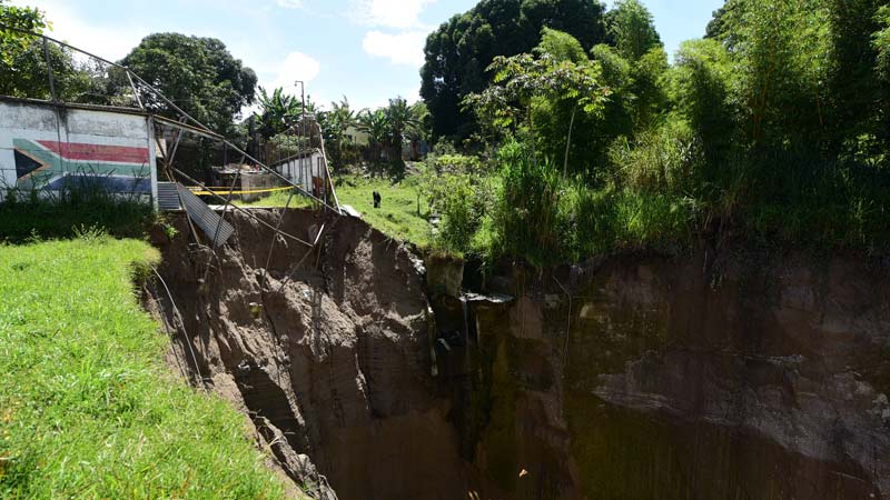 Más derrumbes en la cárcava que amenaza al complejo educativo. En más de una semana alrededor de 20 metros sucumbieron al final del precipicio. Foto EDH/ Menly Cortez