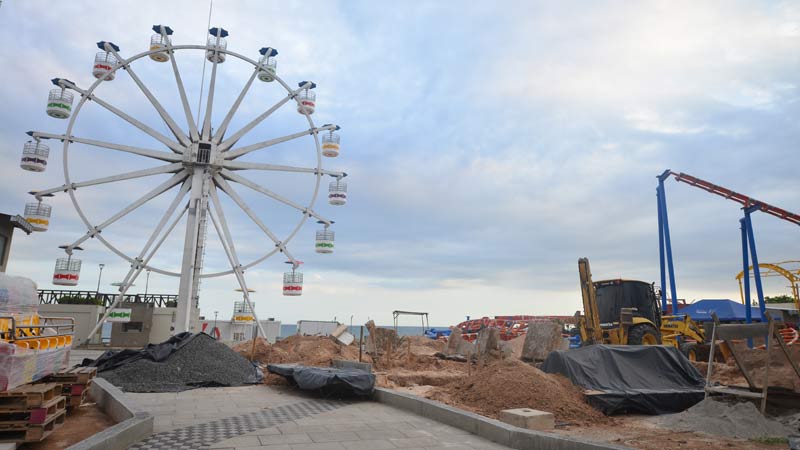 Una rueda de la fortuna, los andamios de una montaña rusa y un carrusel: estos son los avances que se muestran de la construcción del parque de diversiones de Surf City y del nuevo Puerto de La Liberad a cargo de la cooperación china.
