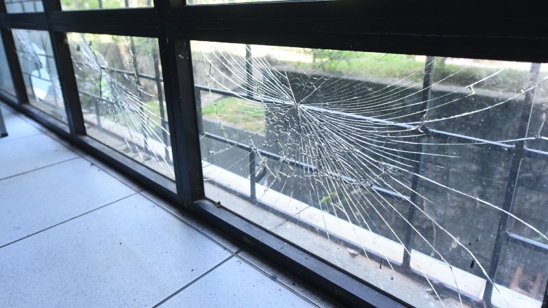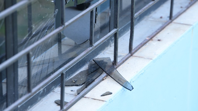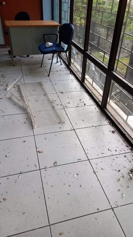 - Las ventanas de la segunda planta del edificio muestran aún lo fuerte de la detonación. Foto EDH/ Menly Cortez