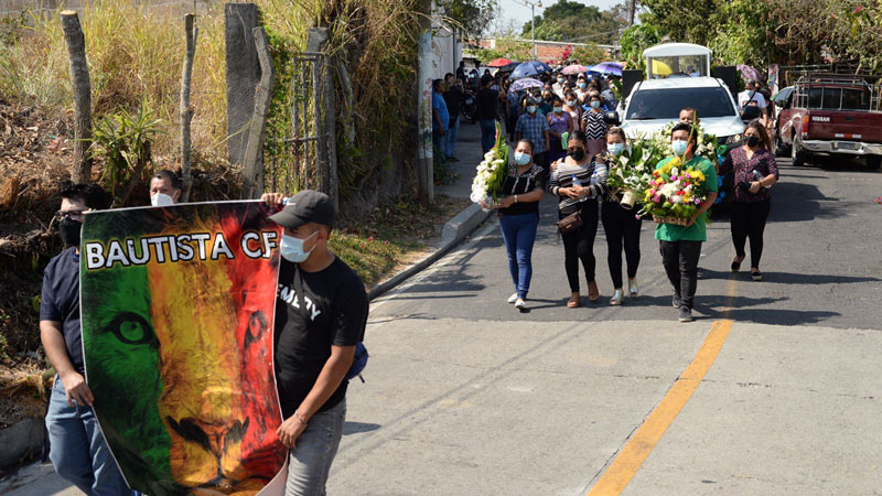 - El ataúd también fue escoltado por una pancarta del Bautista CF, el equipo en el que jugaba el joven, pues era aficionado al fútbol. El uniforme con el dorsal que él usaba, cubrió su ataúd. Foto EDH/ Lissette Lemus