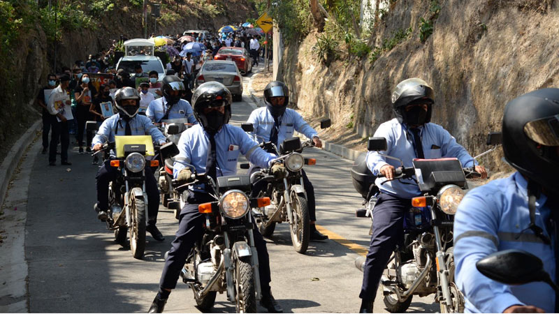 - La caravana fue encabezada por un grupo de gestores bancarios motorizados, quienes fueron compañeros de Cristian, cuando él estuvo destacado en Cojutepeque. Foto EDH/ Lissette Lemus