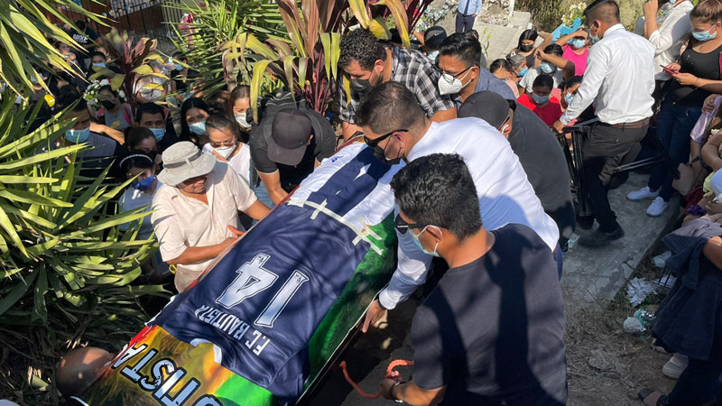 - El ataúd también fue escoltado por una pancarta del Bautista CF, el equipo en el que jugaba el joven, pues era aficionado al fútbol. El uniforme con el dorsal que él usaba, cubrió su ataúd. Foto EDH/ Lissette Lemus