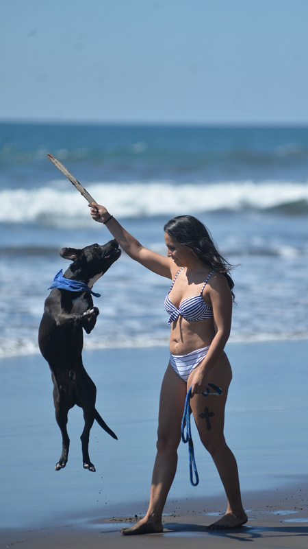 - Una joven juega con su perro en la orilla de la playa Foto EDH/ Archivo