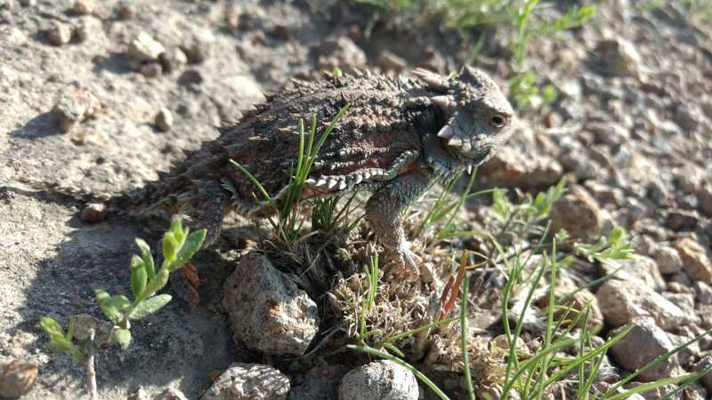 Los lagartos cornudos, que se caracterizan por su cuerpo aplanado en forma oval y una hilera de espinas como cuernos en los costados de su cabeza, tienen su hábitat desde el sur de Canadá hasta Guatemala.